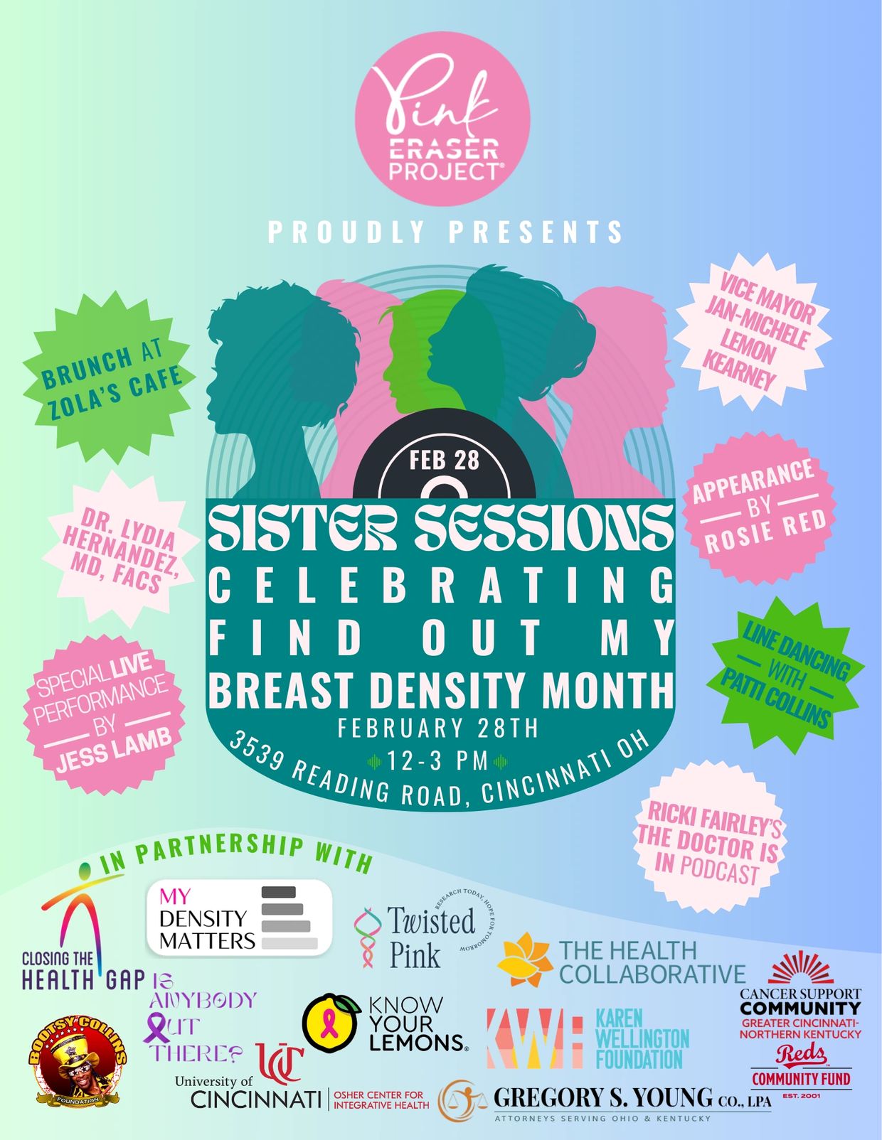 Pink Eraser Project presents its first inaugural Sister Sessions with partners to bring together national and local leaders in breast cancer advocacy, from early detection to metastatic care. The event marks February as a month of breast density awareness and education, honoring the work of My Density Matters and its annual Find Out My Breast Density Day (#FOMBDD), observed each year on the third Wednesday in February.